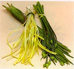 leaves and a mild onion-garlic flavor and aroma. Flowering chives are 11 to 12 inches in length and have firm stalks with small edible flower buds at the tips.