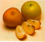 texture, and a speckled yellow green or light brown skin of a pear. Generally they are blander in flavor than European pears.