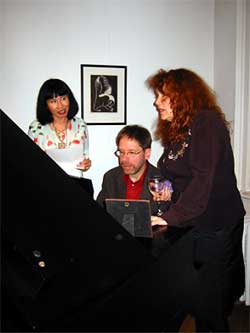 Amy Tan, Sam Barry and Kathi Kamen Goldmark run over a song at Amy's loft