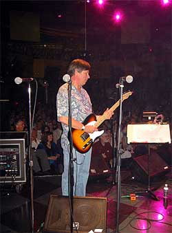 After another fine dinner, this time at the Italian restaurant, Beppe, I hit the stage at Webster Hall, with no clue about what I was supposed to do. Fortunately, it didn't matter much, since the audience of 2,000 or so were there for the stars. They expected to laugh at this garage band of authors, but wound up cheering and dancing through most of the two-hour set of oldies. The laughs came for Amy Tan's dominatrix act on "These Boots Are Made for Walking," for Mitch (Tuesdays With Morrie) Albom's Elvis/Jailhouse Rock getup, and for Roy Blount's band introductions (sample, for Stephen King: "He proved that you can run him over, but you can't stop the music." For me: "He may be 'Almost Famous,' but tonight should put him over the top."). King killed the crowd with his post-accident cult hit, "Stand By Me," and the creepy "Teen Angel."