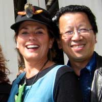Away from Kathi, I've sung at two fundraisers for Jeff Adachi, the victorious candidate for Public Defender in San Francisco, once at a Chinatown restaurant, the Far East, and the other at a popular cabaret, The Plush Room. I also helped organize a troupe of singers from Yet Wah, my karaoke hangout, and hit the stage at the Moon Festival in Chinatown. Twice. I've done Elvis' "Can't Help Falling in Love" at several weddings, including those of TV anchors and reporters Emerald Yeh and Sherry Hu, and at parties, one of them at Bimbo's 365, the classic nightclub that's the TV home base for Chris Isaak. I did a more rockin' Elvis at a movie theater at last year's Mill Valley Film Festival. I've done Elvis on local television - on the Chinese New Year Parade broadcast, which I've co-anchored the past six years on KTVU, and on various other stations, the most recent being the CBS affiliate, KPIX, on the 25th anniversary of Elvis' death. National TV, too: I did Dylan on Your Big Break.