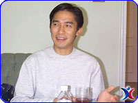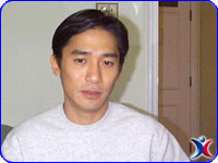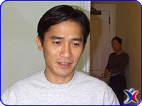 Q: How many times have you seen the movie? Just once? Leung: No, no I saw it twice in Canada, Toronto, and Hong Kong. And then I saw it once in New York. Five or six times. Q: Do you like the role you play? Leung: Yes, yes, very much. Q: Is this your most romantic role? Leung: Most difficult! (Laughter) Q: Can you compare another movie that you did with director Wong Kar-wai, "Happy Together." Leung: "Happy Together" seems to be much more simple, the character. And the character seems to be much more straight