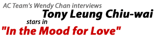 of "In the Mood for Love," at a round table discussion at the Four Seasons Hotel in Los Angeles. Tony Leung is the winner of the Best Actor award at the 2000 Cannes International Film Festival. This movie marks Tony's fifth collaboration with director Wong Kai-wai. more on Tony Leung Chiu-wai Q: Can you tell us how you prepared for this role. I know that [director] Wong Kar-wai doesn't seem to have a real script.Leung: So, we don't prepare! (Laughter) We have nothing to prepare. Because at the very?�beginning, the only thing I know is I'm doing a story about a love affair with Maggie and my