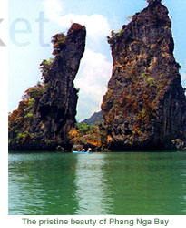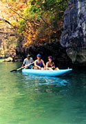Nga Bay. We enter many different "hongs" (Thai for room) and lagoons invisible from outside the islands. Your guide will paddle you. We enjoy a sumptious Thai buffet lunch and in the afternoon