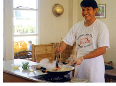 Breakfast at hotel. Transfer to cooking school. Enjoy a full day's class where you will be introduced to Thai ingredients, paste making and tour the local market. You will then learn to make 6 popular Thai dishes, including hot and sour prawn soup, green curry chicken and stir-fried noodles. After preparation you get to eat the delectable food you've prepared in the traditional Northern style. Transfer to Chiang Mai Airport for flight to Bangkok. [Breakfast, Lunch]